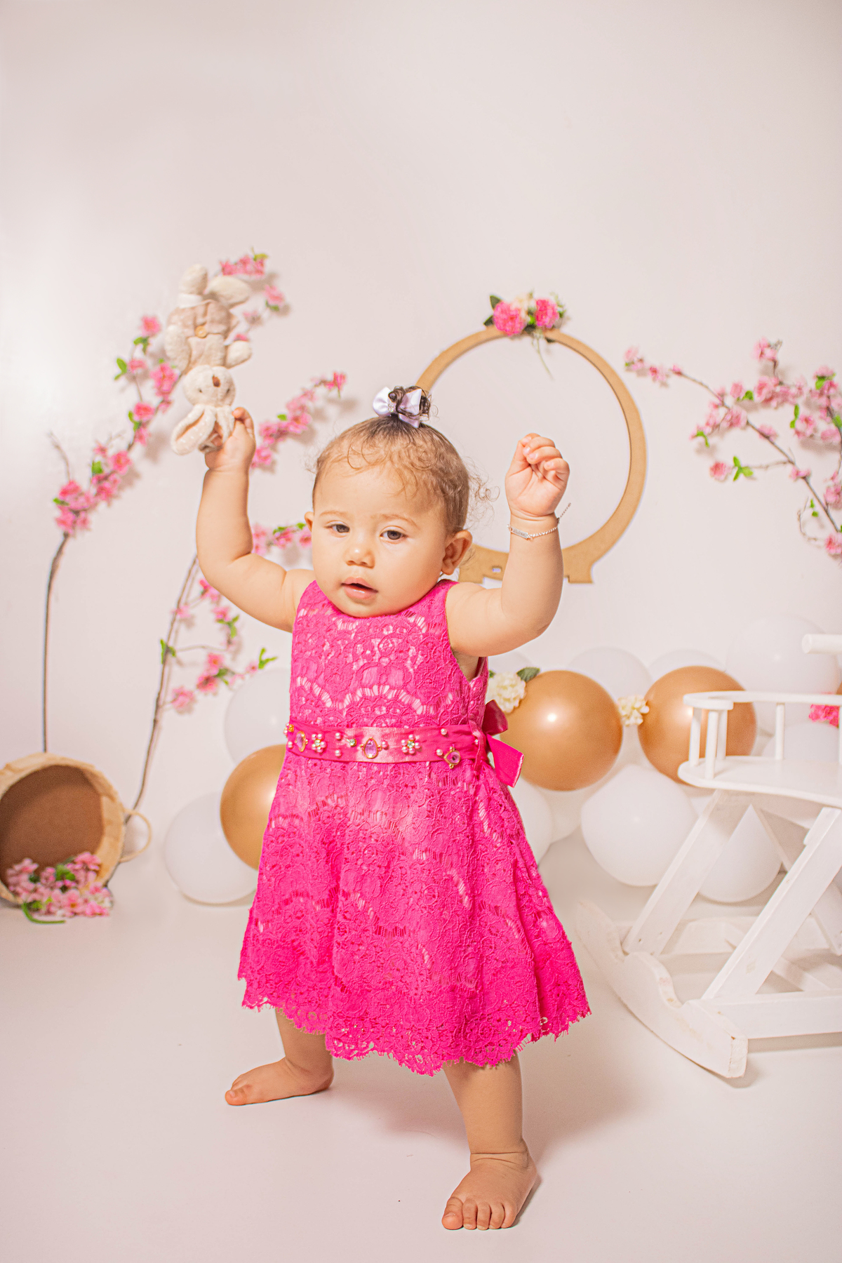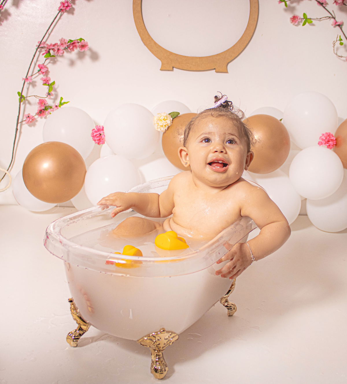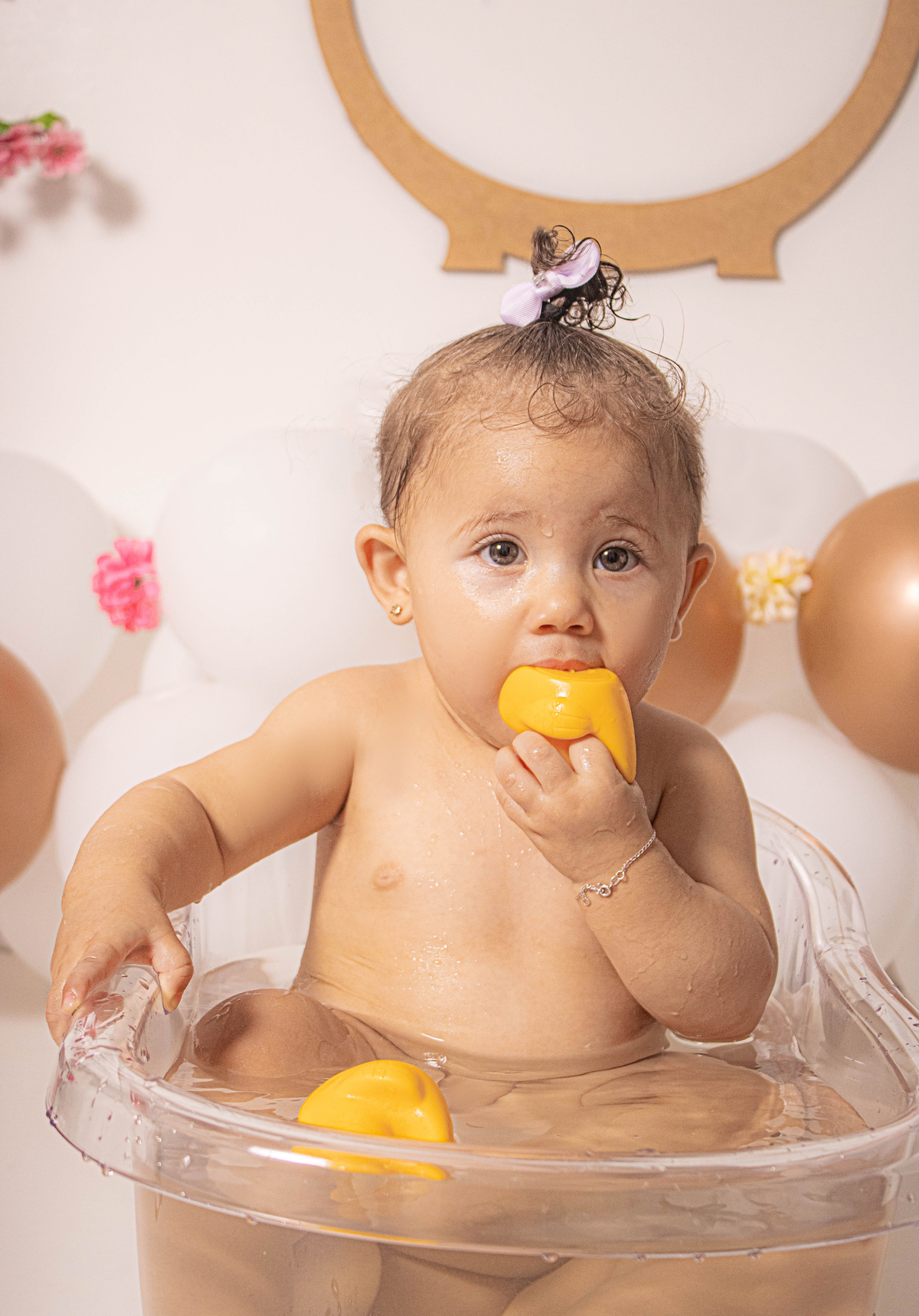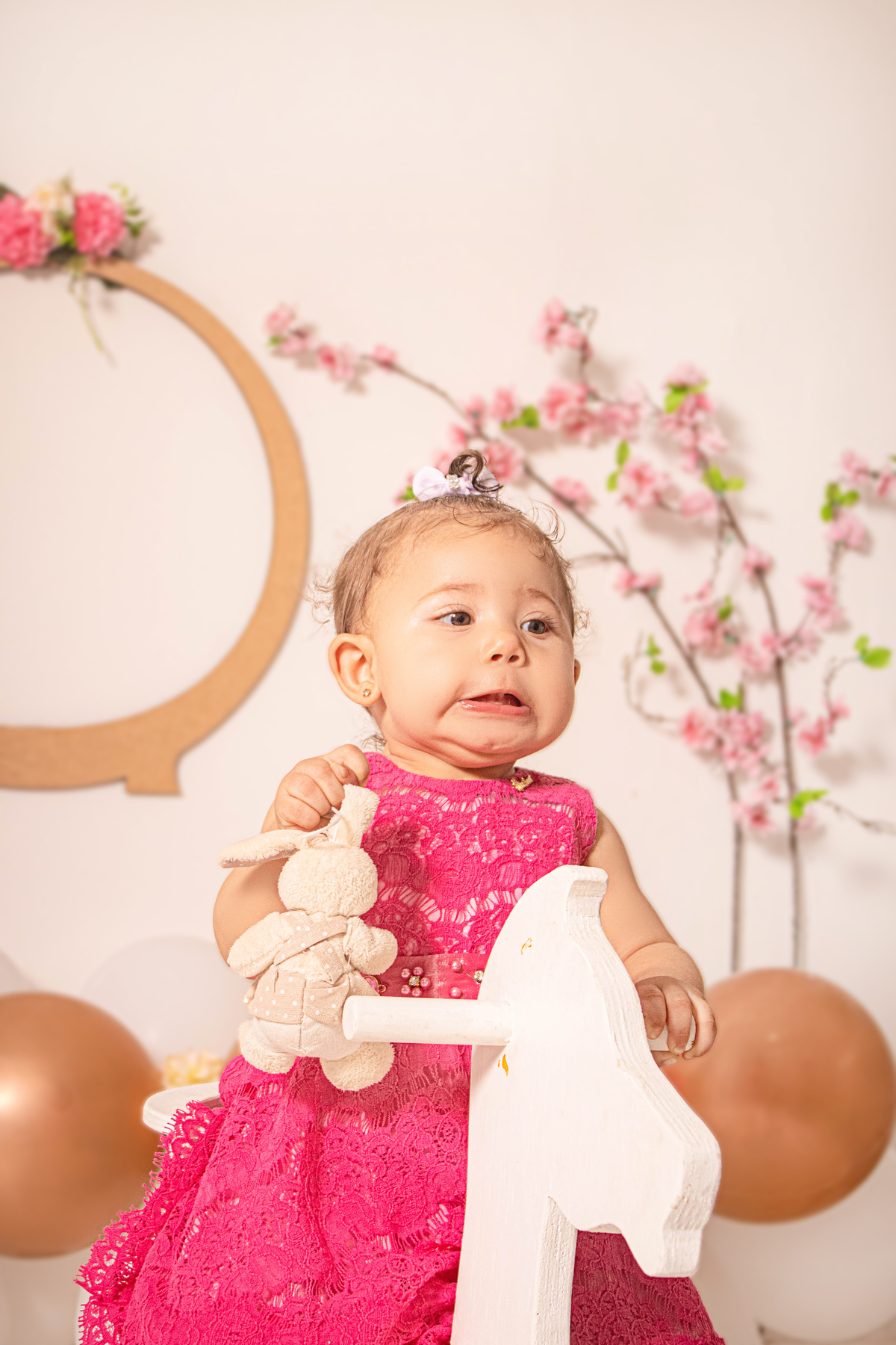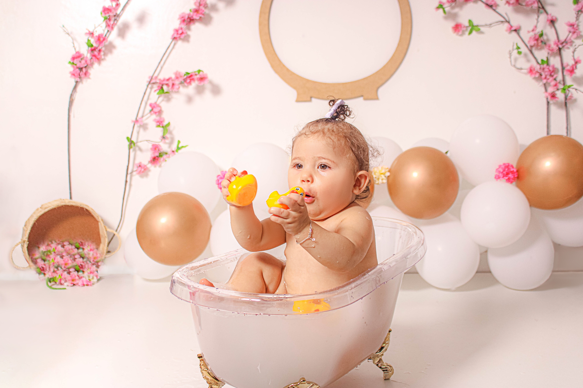 Realizamos aqui no studio o ensaio dos 9 meses da Helena, o tema para esse ensaio lindo foi de jardim encantado, usamos o cavalinho e também a banherinha para Helena se divertir e eu acho que funcionou, pois tiramos sorrisos lindos dela!